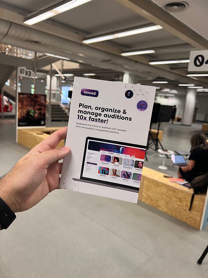 TanzMesse is a bi-annual expo for global dance companies and producers in Dusseldorf, Germany. Many directors and choreographers visit so it’s the perfect place to get in front of our target customers and have in-person interactions. We prepped a guerilla marketing campaign and created a targeted list of directors visiting (locating their stands). It was three days of madness, but I left with incredible conversations, great suggestions, and exciting new ideas. Most excitingly, 10-15 new companies pledged to join Lanced this season.